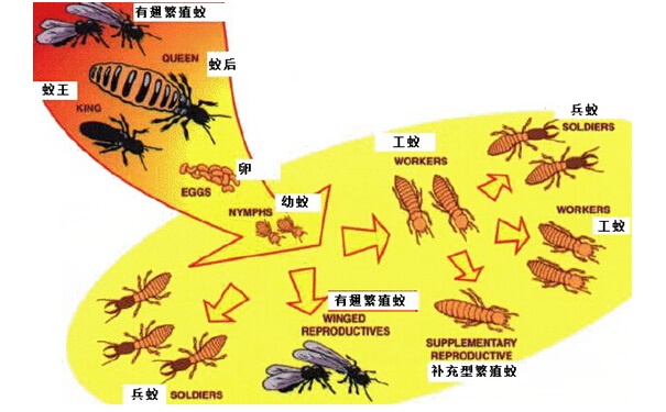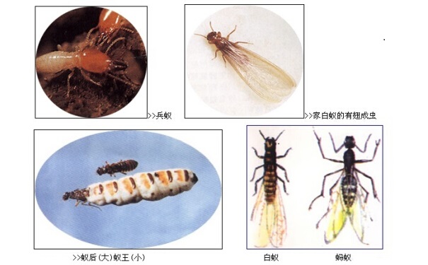 常見白蟻的分類表:等翅目 白蟻科大白蟻屬黃翅大白蟻 土白蟻屬黑翅土白蟻木白蟻科堆砂白蟻屬截頭堆砂白蟻鼻白蟻科散白蟻屬黑胸散白蟻 乳白蟻屬臺灣乳白蟻 和胸部的特 在確定白蟻所屬的科后再根據白蟻危害種類鑒別一覽表中兵蟻頭部征及其棲息和筑巢習性進行鑒別。